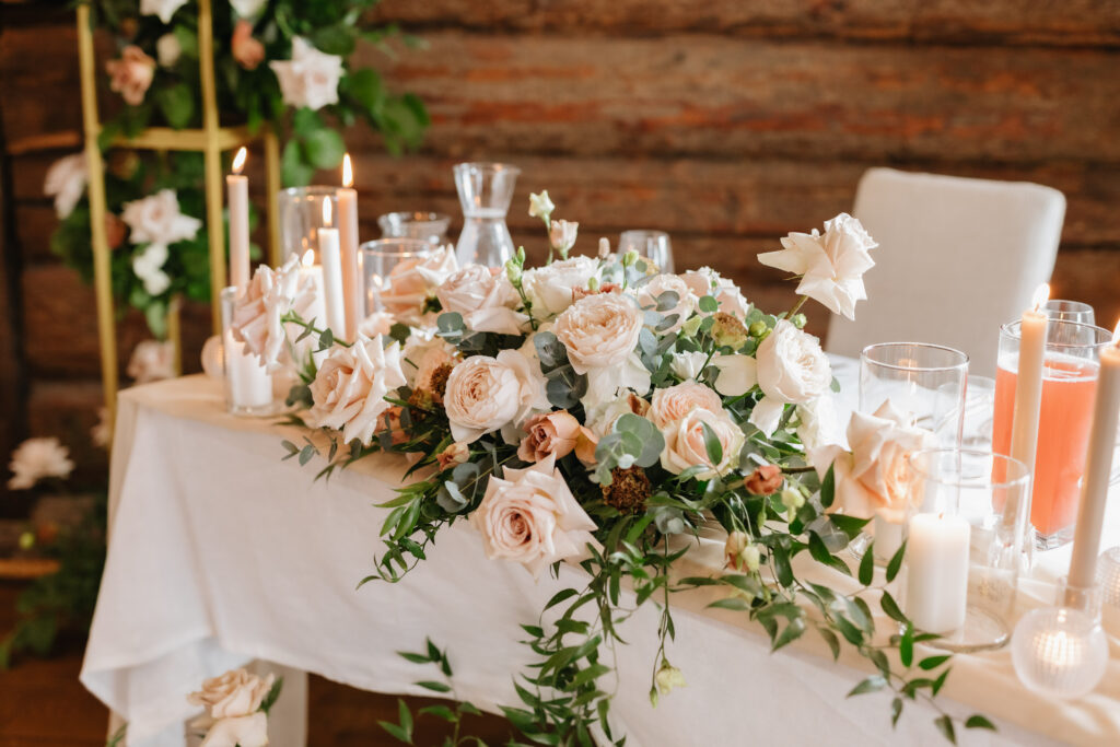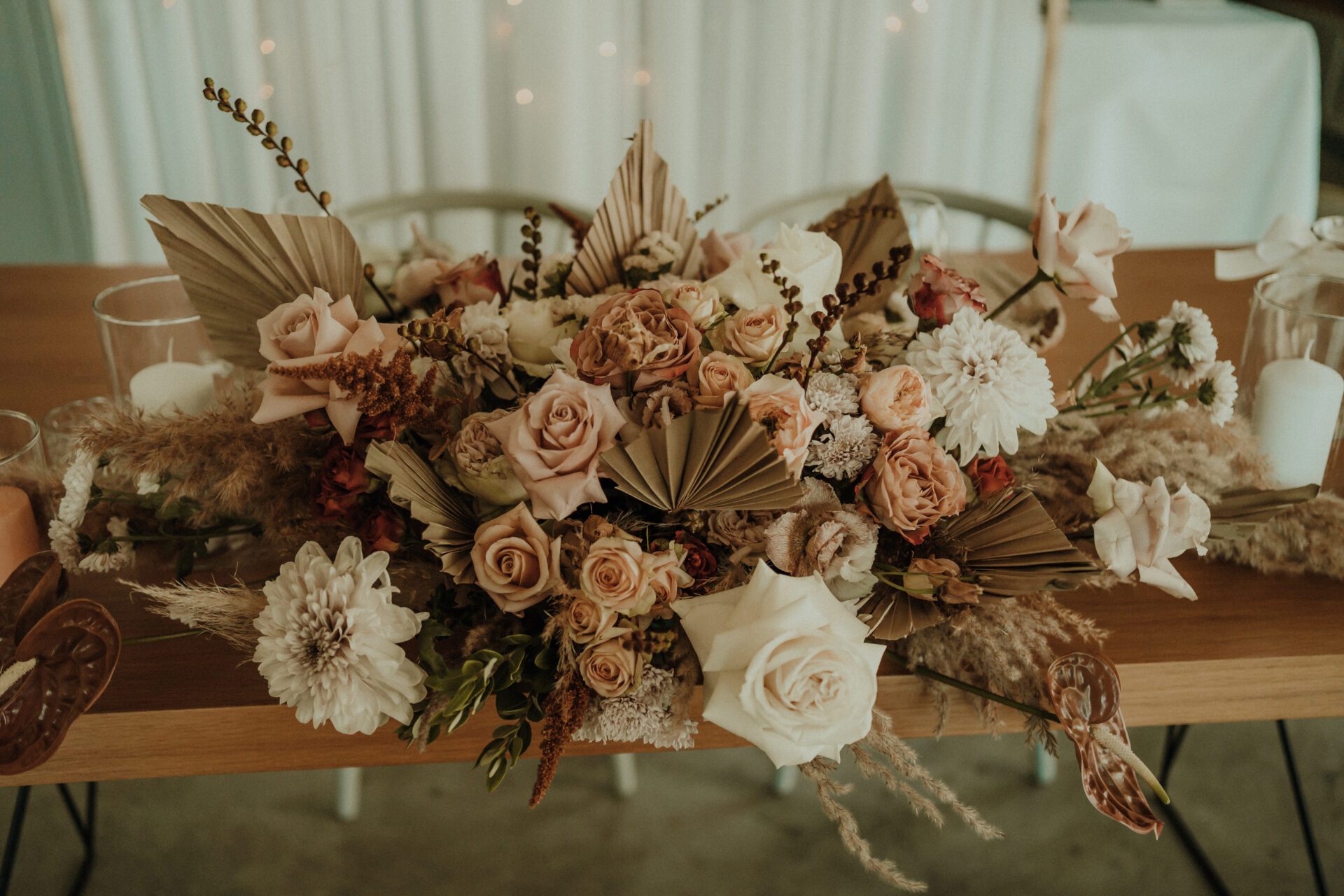 Valik lauakaunistusteks tehtud lilleseadeid.